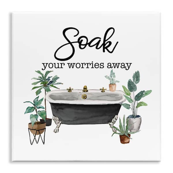 Soak Worries Away Plants by Masey St. Studios Unframed Typography Graphic Art Print 12 in. x 12 in.