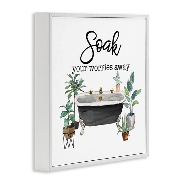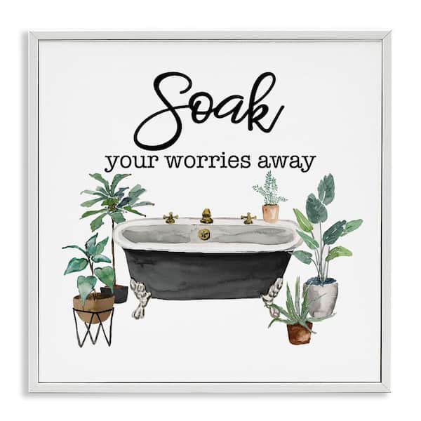 Soak Worries Away Plants by Masey St. Studios White Framed Typography Giclee Art Print 17 in. x 17 in.