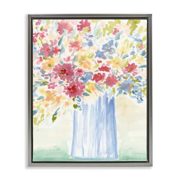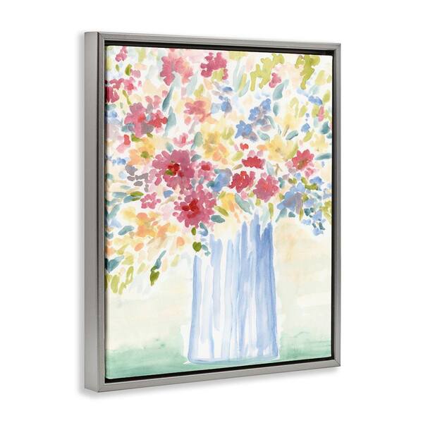 Soft Blossoms Bouquet by June Erica Vess Gray Floater Frame Nature Graphic Art Print 31 in. x 25 in.