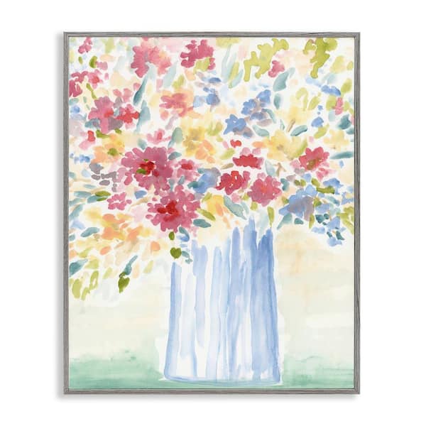Soft Blossoms Bouquet by June Erica Vess Gray Framed Nature Giclee Art Print 30 in. x 24 in.