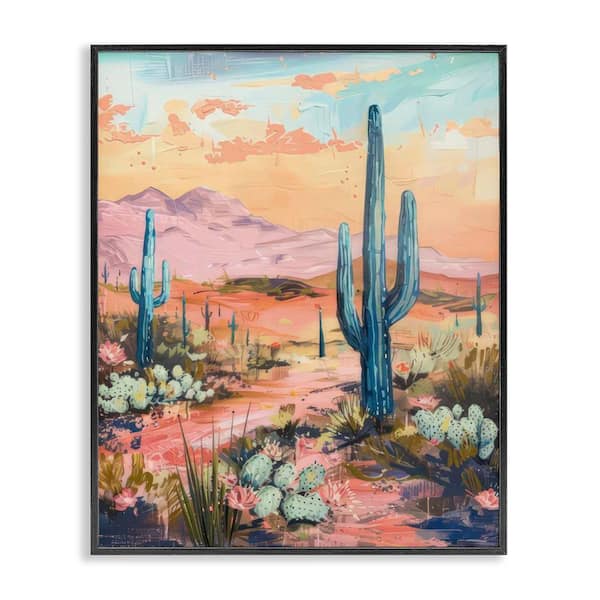 Soft Canyon Sunset Cacti by LSR Design Studio Black Framed Nature Giclee Art Print 30 in. x 24 in.