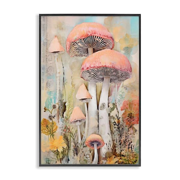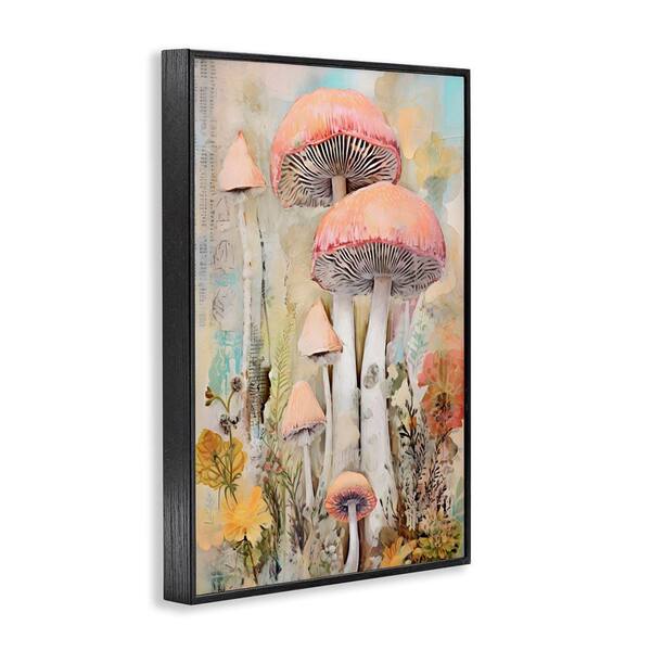 Soft Collaged Mushrooms by LSR Design Studio Black Framed Nature Giclee Art Print 24 in. x 16 in.
