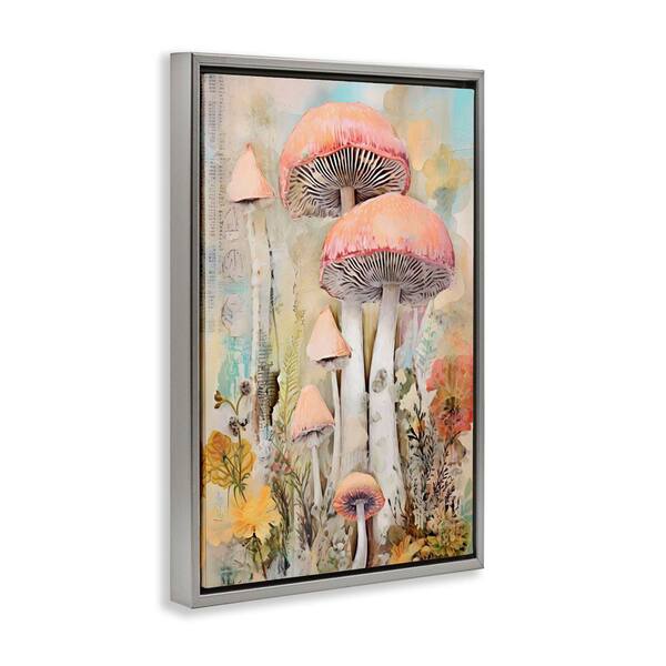 Soft Collaged Mushrooms by LSR Design Studio Gray Floater Frame Nature Graphic Art Print 31 in. x 21 in.
