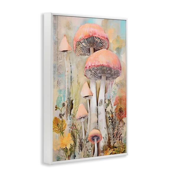 Soft Collaged Mushrooms by LSR Design Studio White Framed Nature Giclee Art Print 18 in. x 12 in.