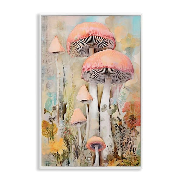 Soft Collaged Mushrooms by LSR Design Studio White Framed Nature Giclee Art Print 30 in. x 20 in.