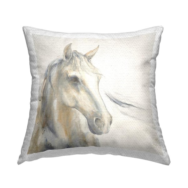 Soft Country Horse Portrait Beige Square Outdoor Throw Pillow