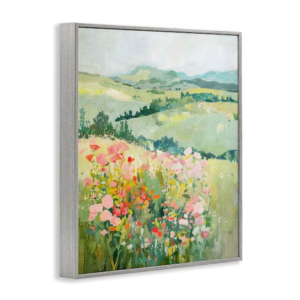 Soft Flowers Meadow by RileyB Gray Framed Nature Giclee Art Print 20 in. x 16 in.