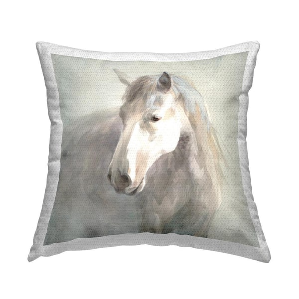 Soft Grey Horse Portrait Beige Square Outdoor Throw Pillow