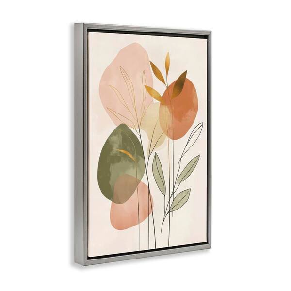 Soft Organic Shape Botanicals by LSR Design Studio Gray Floater Frame Nature Graphic Art Print 31 in. x 21 in.