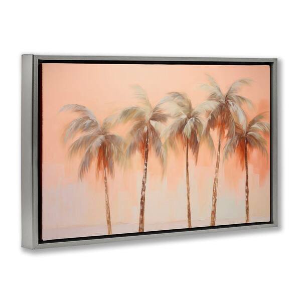 Soft Palm Tree Lineup by Arlington Prints Gray Floater Frame Nature Graphic Art Print 17 in. x 25 in.