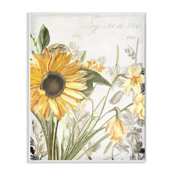 Soft Sunflower Floral over Vintage Plant Illustration By Kim Allen Unframed Print Nature Wall Art 10 in. x 15 in.