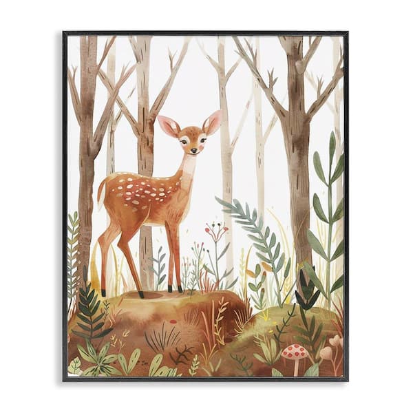 Soft Woodland Deer by LSR Design Studio Black Framed Nature Giclee Art Print 30 in. x 24 in.