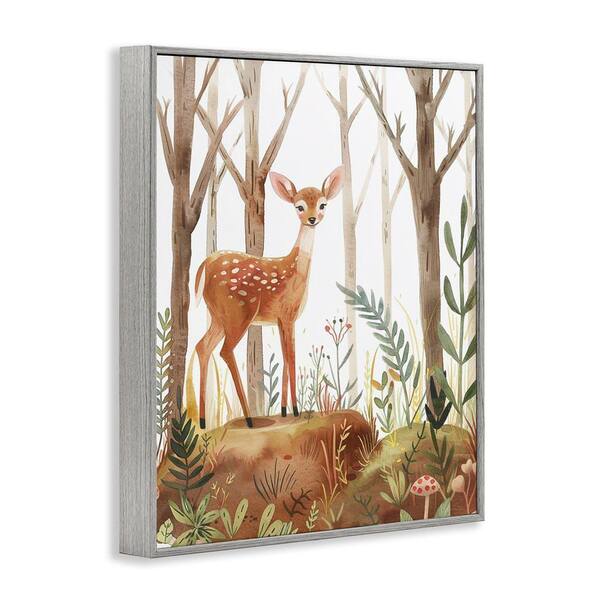 Soft Woodland Deer by LSR Design Studio Gray Framed Nature Giclee Art Print 30 in. x 24 in.