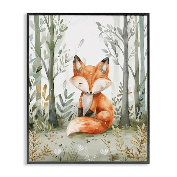 Soft Woodland Fox by LSR Design Studio Black Framed Nature Giclee Art Print 14 in. x 11 in.