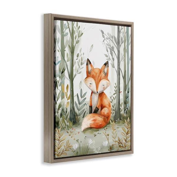 Soft Woodland Fox by LSR Design Studio Brown Floater Frame Nature Graphic Art Print 31 in. x 25 in.