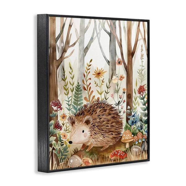 Soft Woodland Hedgehog by LSR Design Studio Black Framed Nature Giclee Art Print 20 in. x 16 in.