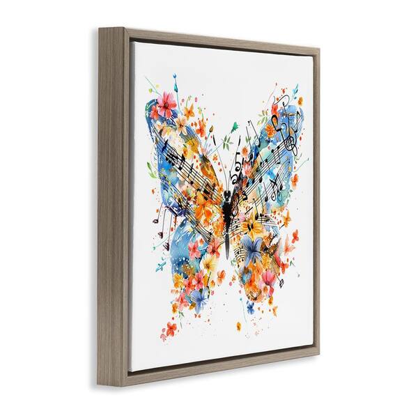 Song Notes Butterfly by LSR Design Studio Brown Floater Frame Animal Graphic Art Print 25 in. x 25 in.