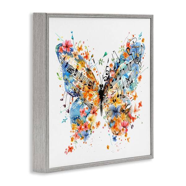 Song Notes Butterfly by LSR Design Studio Gray Framed Animal Giclee Art Print 12 in. x 12 in.