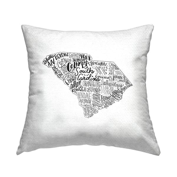 South Carolina Typography Cities Shape Map Black Square Outdoor Throw Pillow