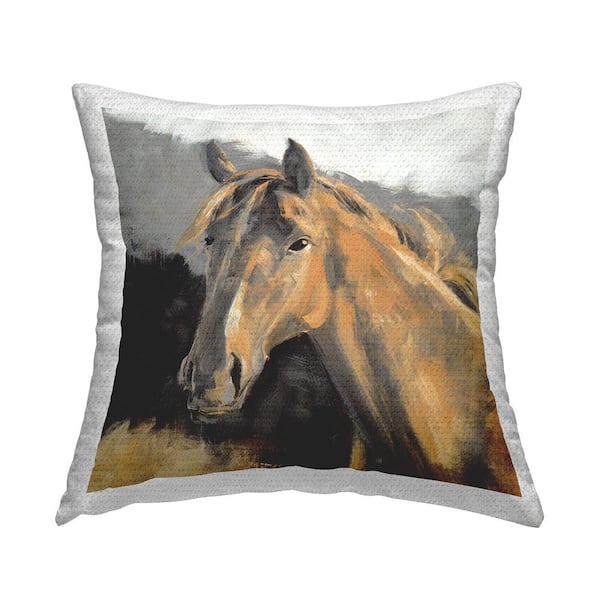 Southwestern Country Horse Brown Rural Portrait Grey Square Outdoor Throw Pillow
