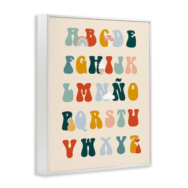 Spanish Alphabet Retro Illustrations by Lil' Rue White Framed Typography Giclee Art Print 20 in. x 16 in.
