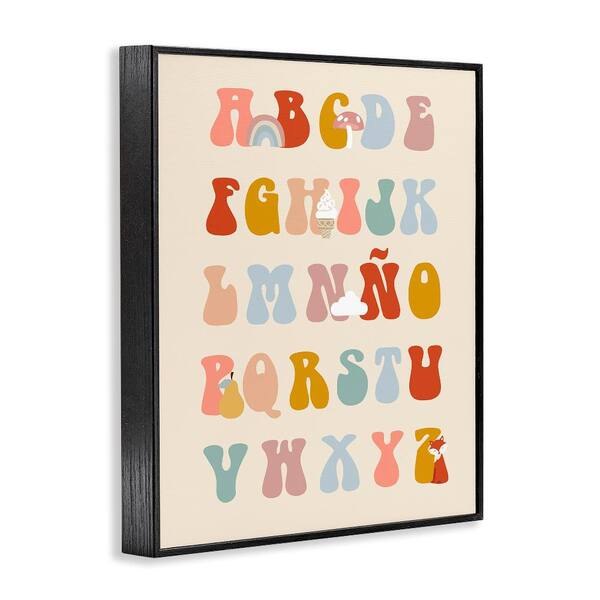 Spanish Alphabet Soft Illustrations by Lil' Rue Black Framed Typography Giclee Art Print 14 in. x 11 in.