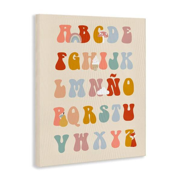 Spanish Alphabet Soft Illustrations by Lil' Rue Gallery Wrapped Unframed Typography Graphic Art Print 48 in. x 36 in.
