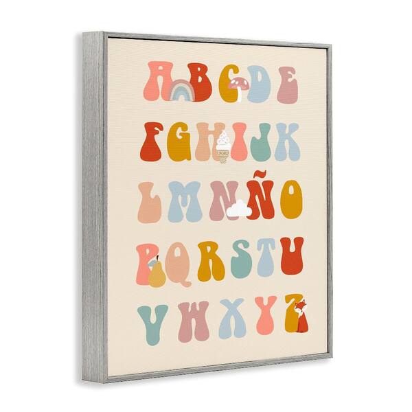 Spanish Alphabet Soft Illustrations by Lil' Rue Gray Framed Typography Giclee Art Print 20 in. x 16 in.