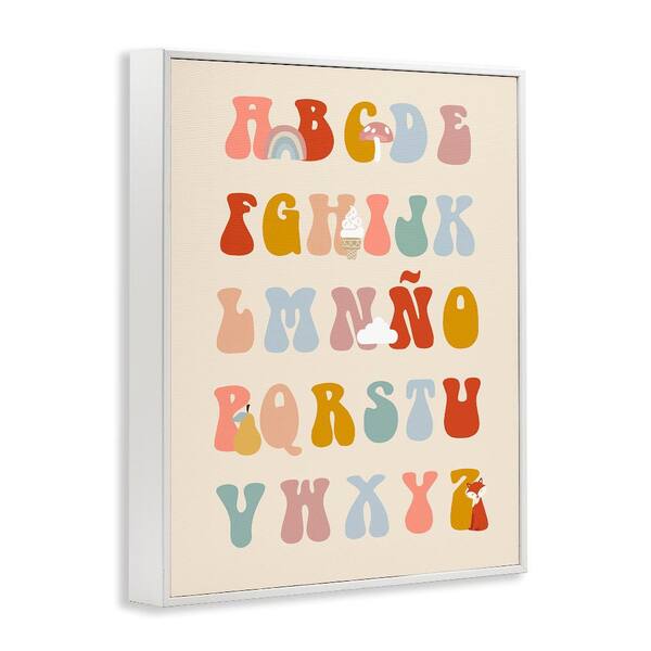 Spanish Alphabet Soft Illustrations by Lil' Rue White Framed Typography Giclee Art Print 30 in. x 24 in.