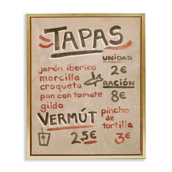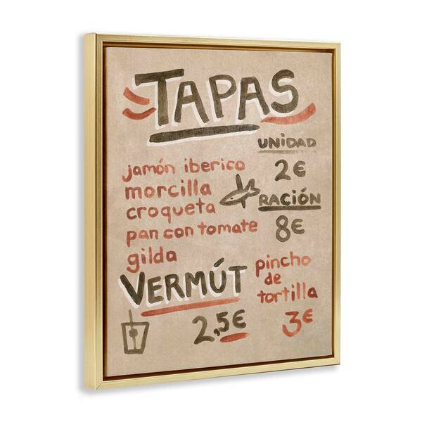 Spanish Tapas Menu by June Erica Vess Gold Floater Frame Food Graphic Art Print 31 in. x 25 in.