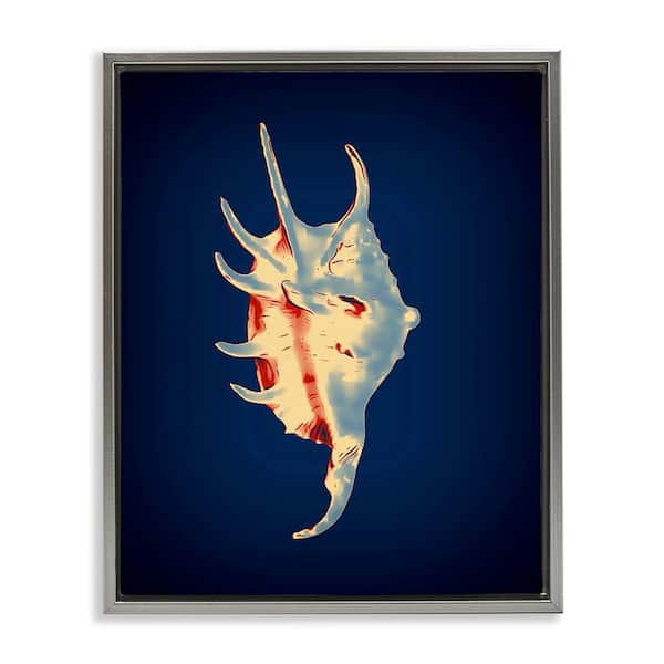 Spider Conch on Blue by Graffi tee Studios Gray Floater Frame Coastal Graphic Art Print 21 in. x 17 in.