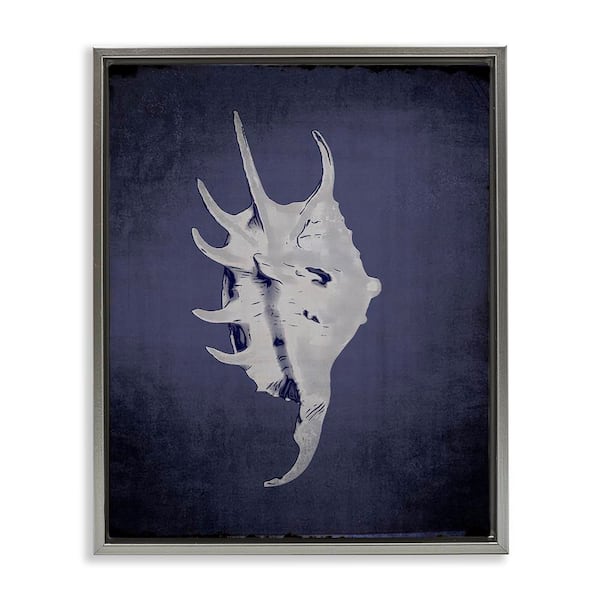 Spider Conch on Indigo by Graffi tee Studios Gray Floater Frame Coastal Graphic Art Print 21 in. x 17 in.