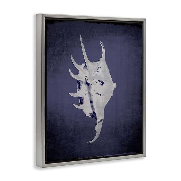 Spider Conch on Indigo by Graffi tee Studios Gray Floater Frame Coastal Graphic Art Print 31 in. x 25 in.
