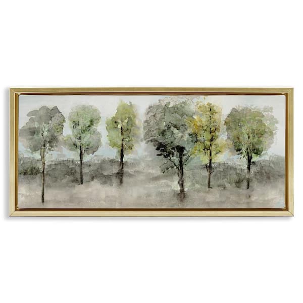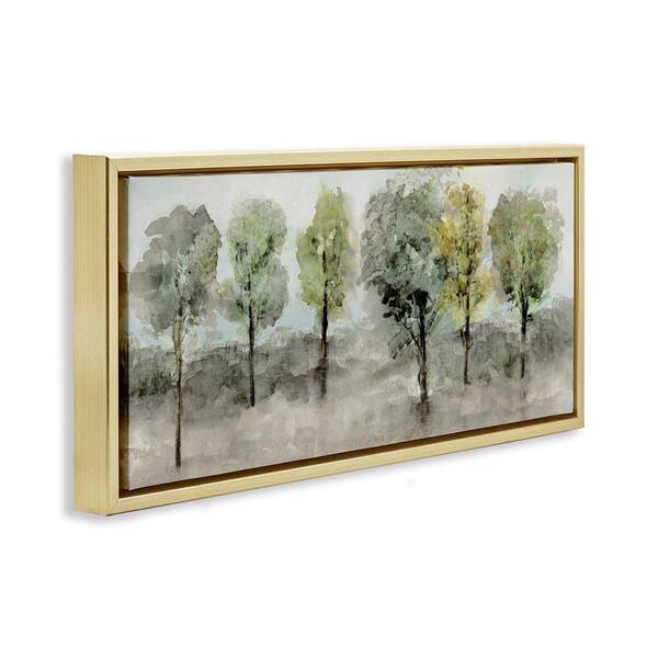 Splashed Watercolor Trees by Val Rhodes Gold Floater Frame Nature Graphic Art Print 14 in. x 31 in.