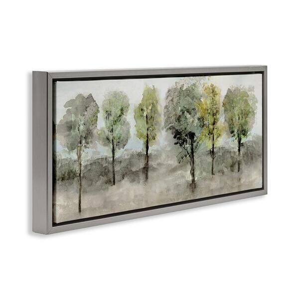 Splashed Watercolor Trees by Val Rhodes Gray Floater Frame Nature Graphic Art Print 14 in. x 31 in.