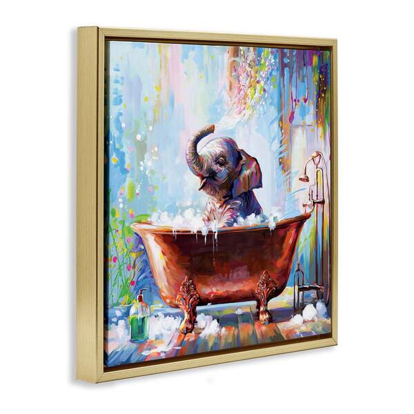 Splashing Baby Elephant by Leon Devenice Gold Floater Frame Animal Graphic Art Print 25 in. x 25 in.
