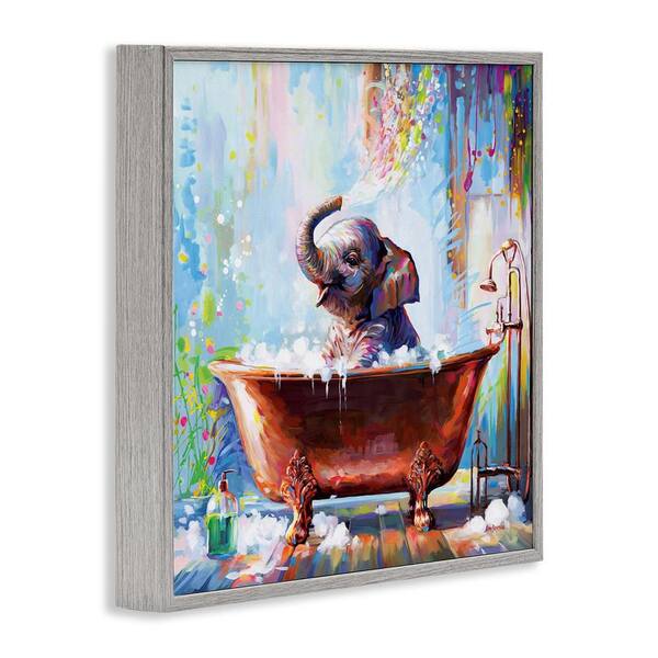 Splashing Baby Elephant by Leon Devenice Gray Framed Animal Giclee Art Print 24 in. x 24 in.