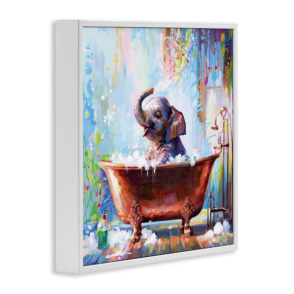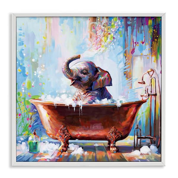 Splashing Baby Elephant by Leon Devenice White Framed Animal Giclee Art Print 24 in. x 24 in.
