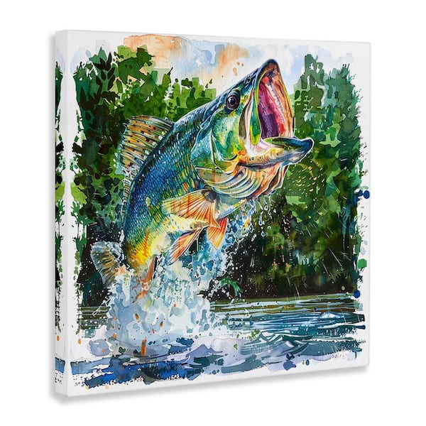 Splashing Bass Fish by LSR Design Studio Unframed Animal Graphic Art Print 17 in. x 17 in.