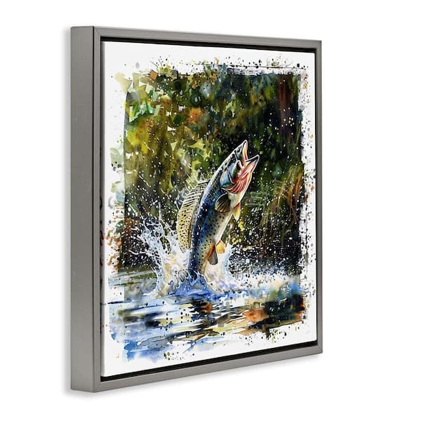 Splashing Lake Bass by LSR Design Studio Gray Floater Frame Animal Graphic Art Print 25 in. x 25 in.