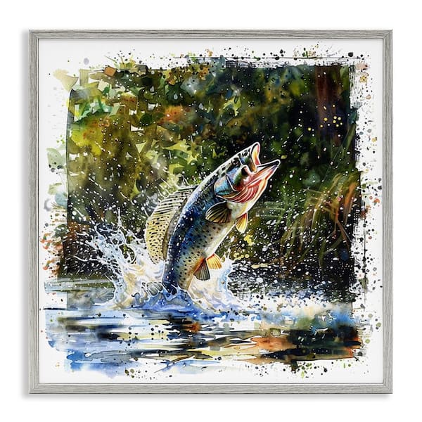 Splashing Lake Bass by LSR Design Studio Gray Framed Animal Giclee Art Print 24 in. x 24 in.