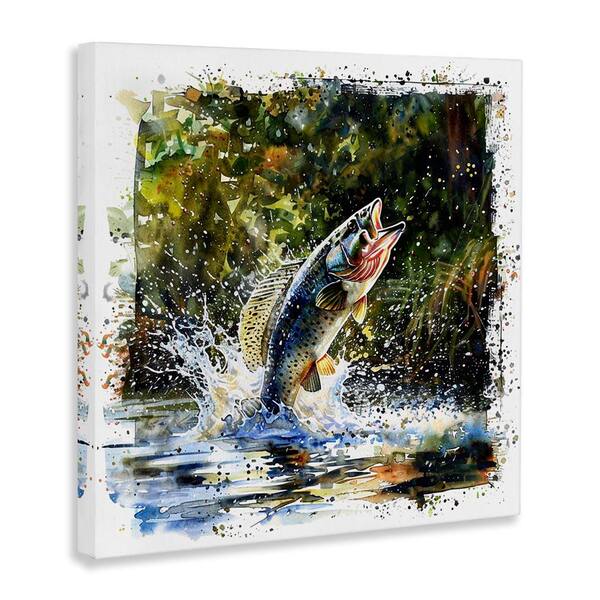 Splashing Lake Bass by LSR Design Studio Unframed Animal Graphic Art Print 17 in. x 17 in.