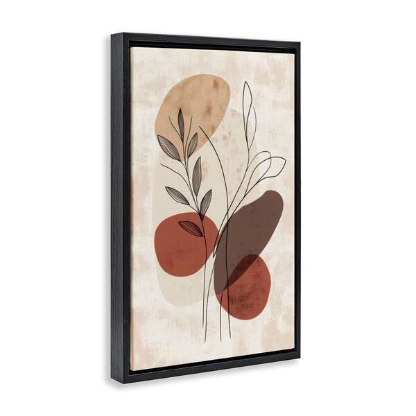 Sprig Outlines Neutrals by LSR Design Studio Black Floater Frame Nature Graphic Art Print 31 in. x 21 in.
