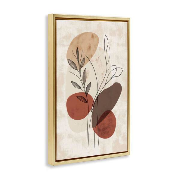 Sprig Outlines Neutrals by LSR Design Studio Gold Floater Frame Nature Graphic Art Print 31 in. x 21 in.