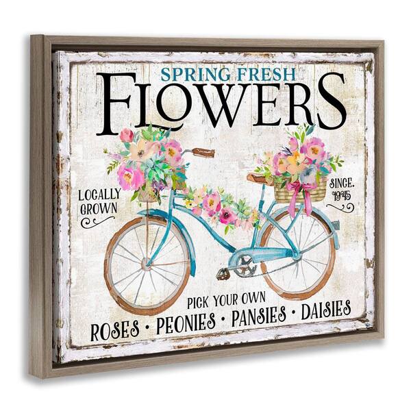 Spring Fresh Flowers & Bike by Creatif Belle Brown Floater Frame Nature Graphic Art Print 25 in. x 31 in.