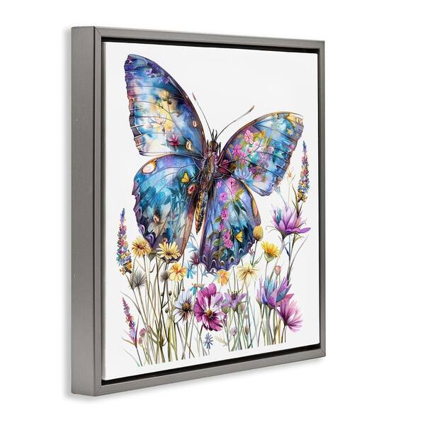 Spring Garden Butterfly by LSR Design Studio Gray Floater Frame Animal Graphic Art Print 18 in. x 18 in.