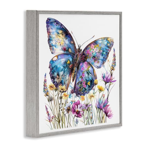 Spring Garden Butterfly by LSR Design Studio Gray Framed Animal Giclee Art Print 12 in. x 12 in.