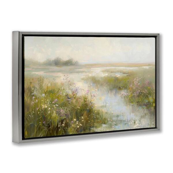Spring River with Wild Blooms by LSR Design Studio Gray Floater Frame Nature Graphic Art Print 21 in. x 31 in.