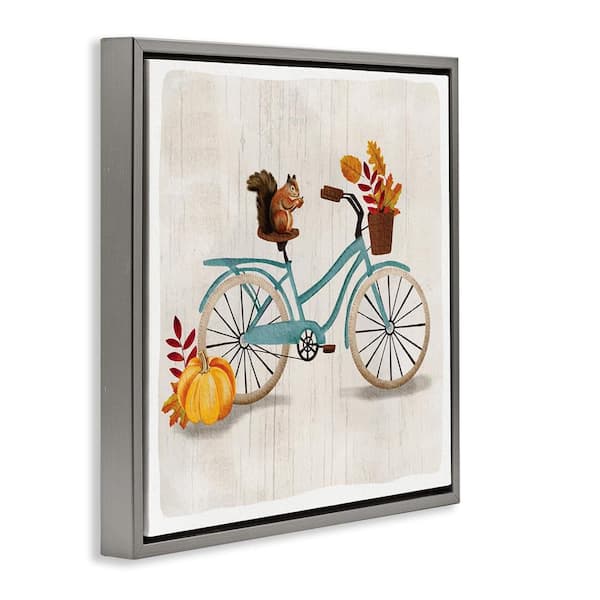 Squirrel on Autumnal Bicycle by Jackie Quigley Gray Floater Frame Graphic Animal Art Print 25 in. x 25 in.