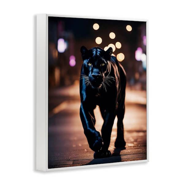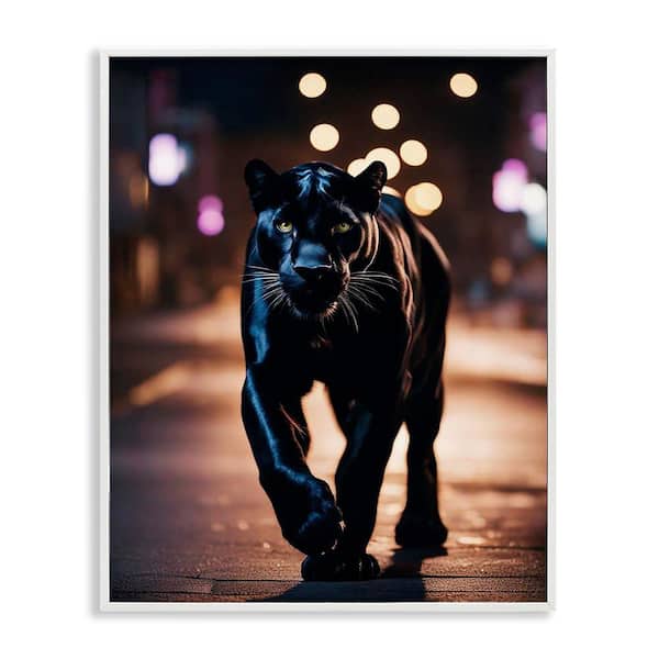 Stalking Panther on Street by Noah Bay White Framed Animal Giclee Art Print 30 in. x 24 in.